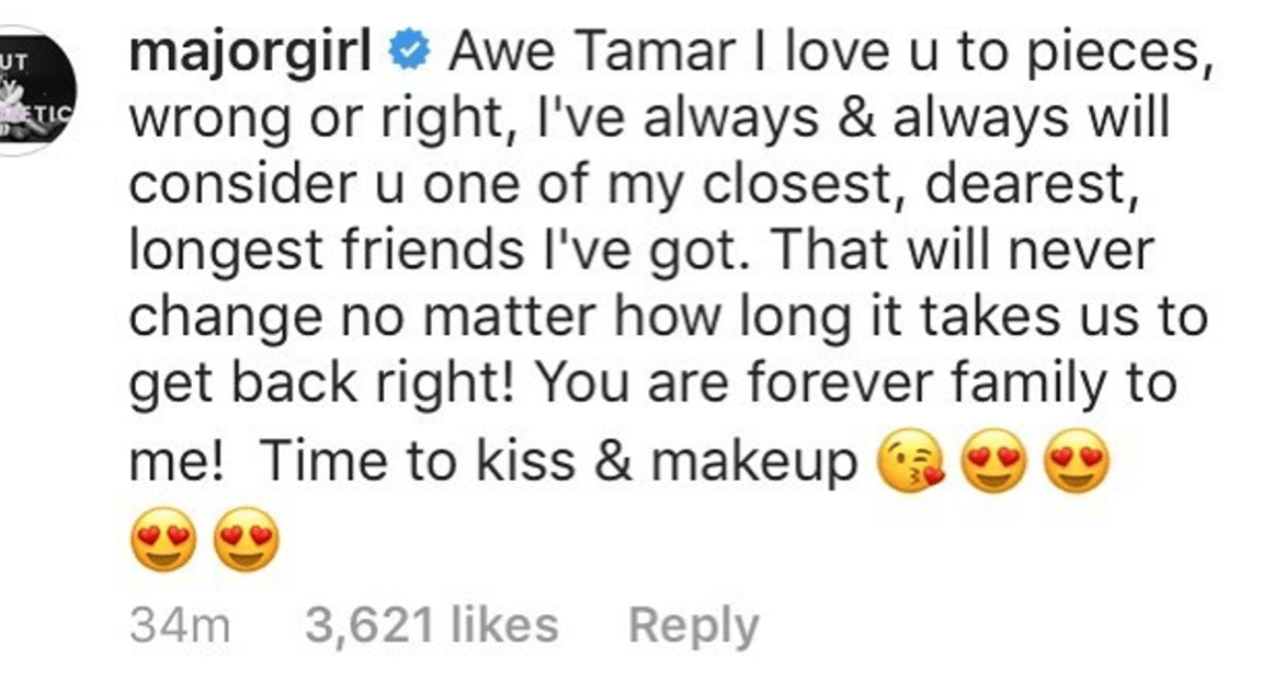 Well on Wednesday evening (June 7) Tamar took to Instagram to clear the air on her fallout with Tiny and offer a reconciliation between she, Tiny and her soon to be ex husband, T.I.