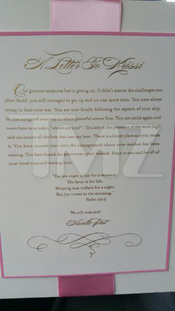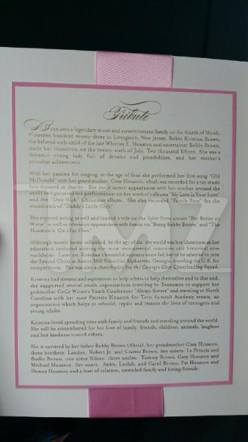 Wow, well TMZ apparently also got exclusive photos of the funeral program and apparently Bobbi’s send off came via her mother, in the form of a song. Get into the snaps of the program below.